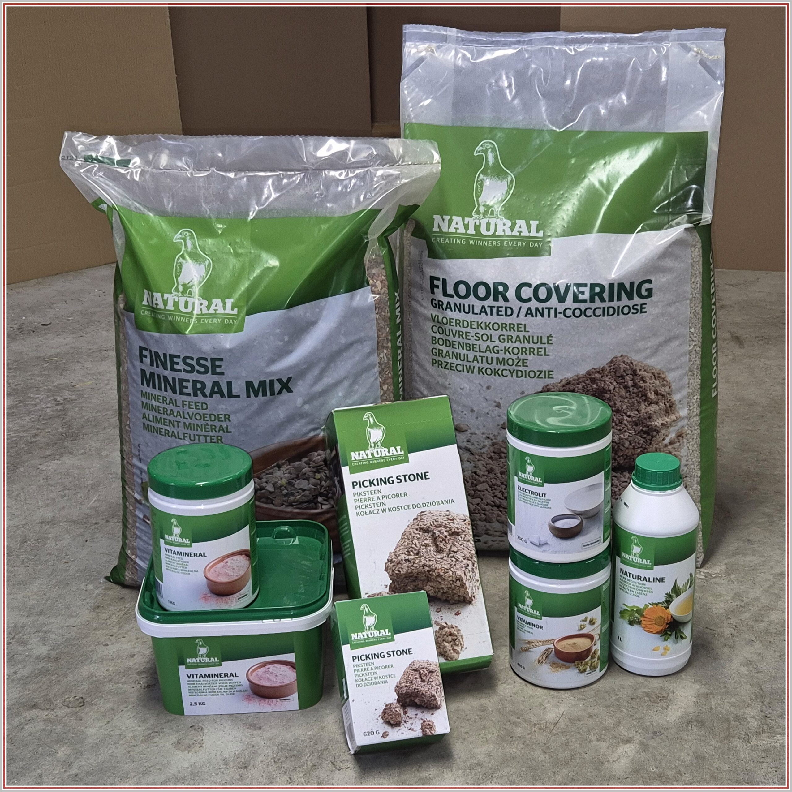 Naast het duivenvoer hebben we ook een groot assortiment NATURAL-bijproducten: