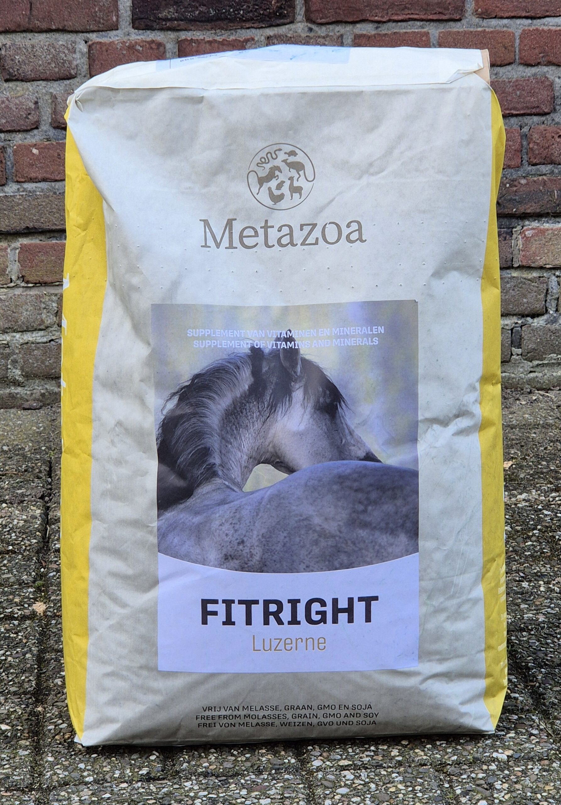 Metazoa Fitright Luzerne is het eerste echte breedspectrum mineralen- en vitaminensupplement voor paarden en pony’s. Dit breedspectrum supplement is in een smakelijke 4 mm pellet geperst zodat ook veulens het makkelijk op kunnen nemen.